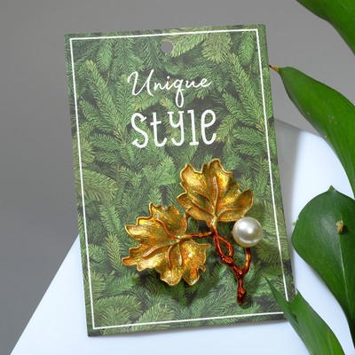 Брошь «Листья кленовые», цветная в золоте