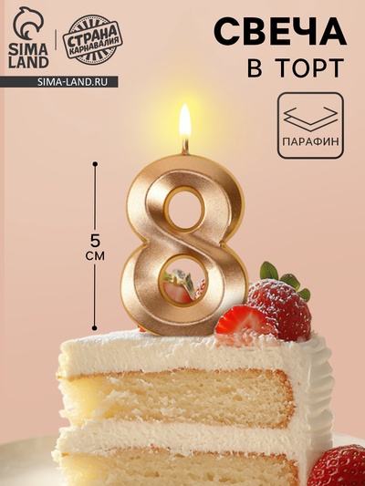 Свеча в торт на шпажке «Грань», цифра 8, шамп...