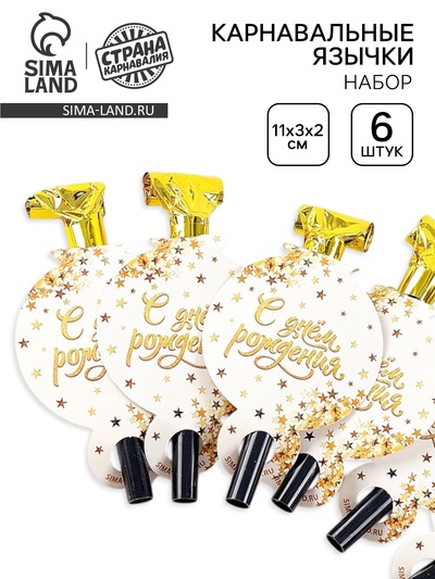 Дудка язычок «С Днем Рождения», набор 6 шт