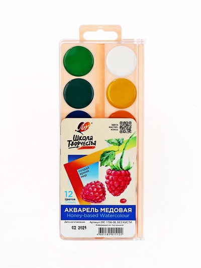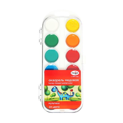 Акварельные краски медовые 12 цветов в картон...