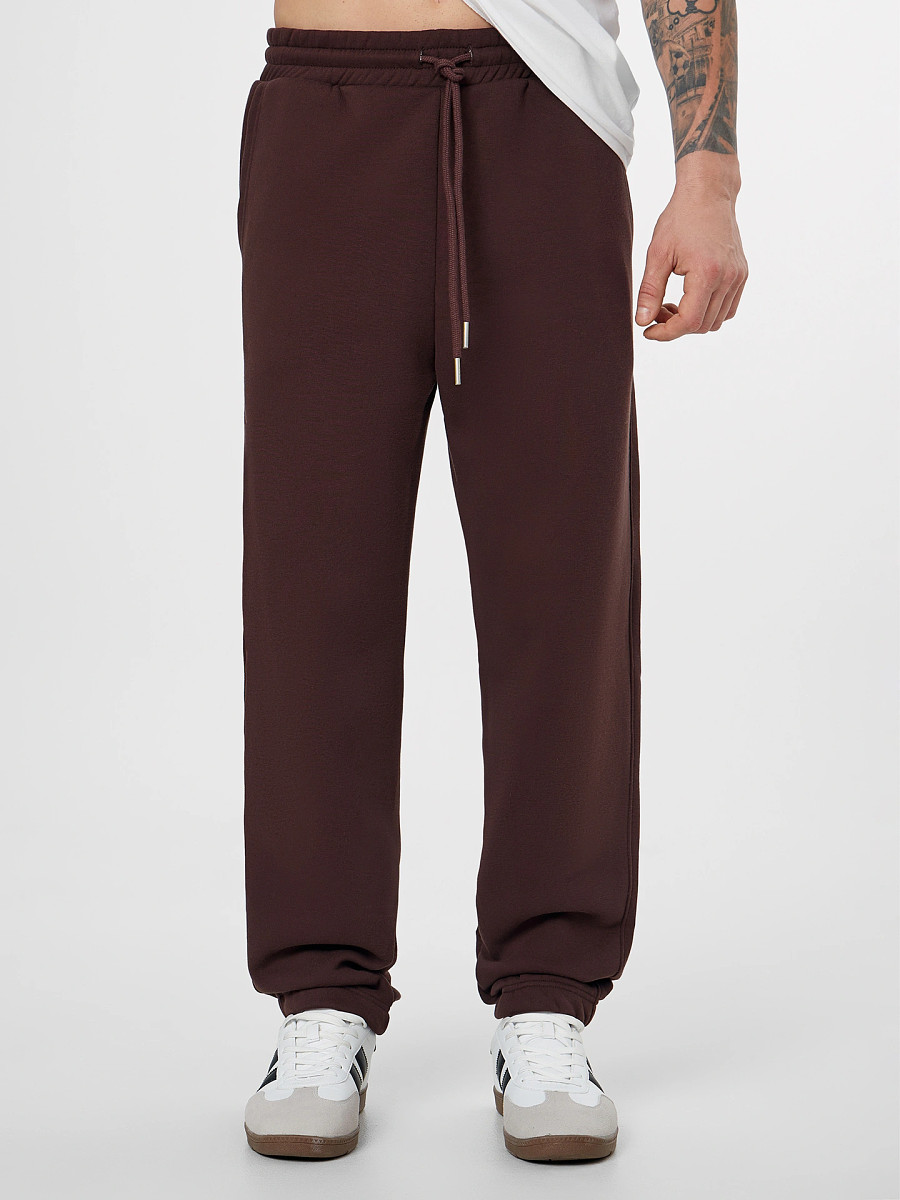 Теплые брюки джоггеры мужские коричневые с на...