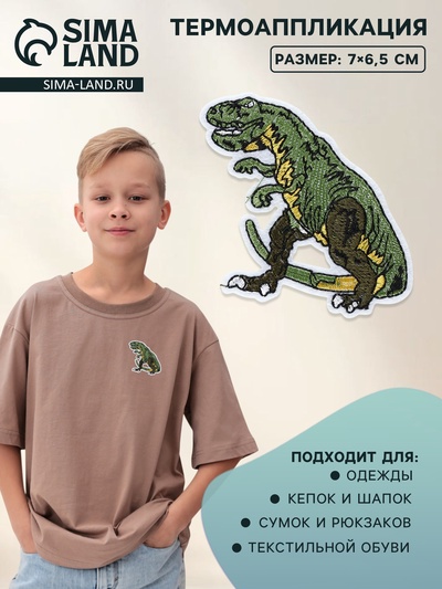Термоаппликация «Динозавр», 7×6.5 см, зелёная