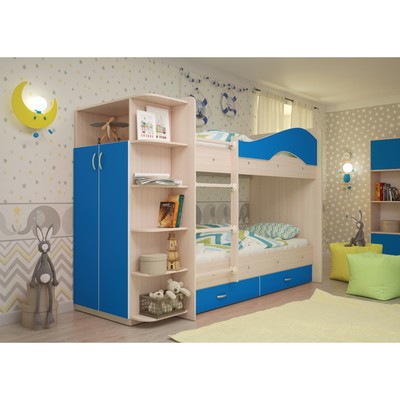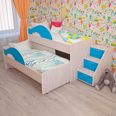 Кровать двухъярусная выкатная Матрешка Синий/...
