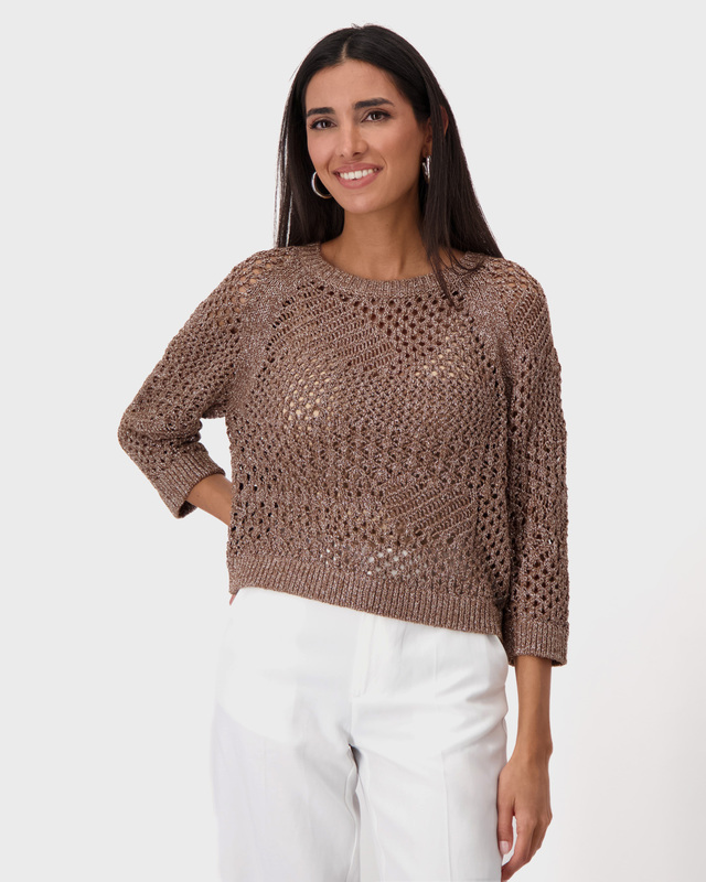Пуловер ажурной вязки с люрексом и рукавом 3/...
