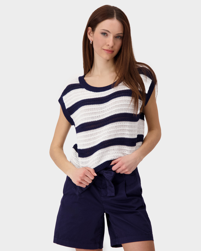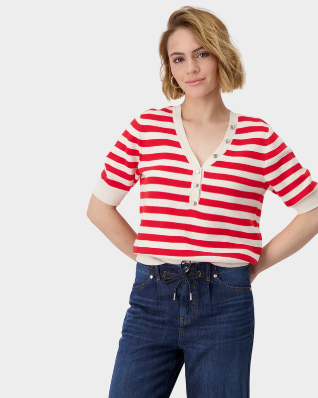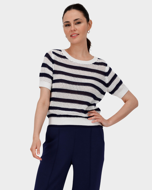 Полосатый пуловер с коротким рукавом и круглы...