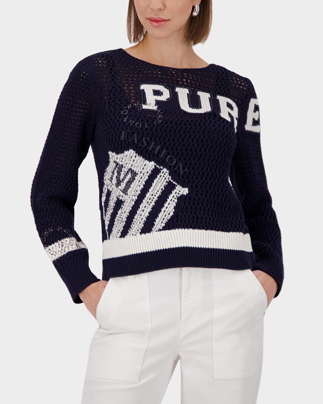 Пуловер с ажурным узором и вырезом-лодочкой