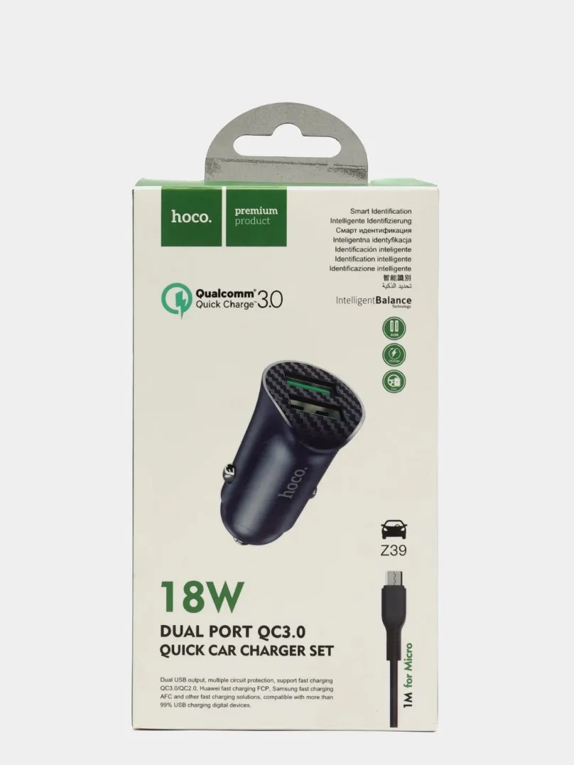 Зарядное устройство HOCO Z39 QC3.0, 2USB с к...