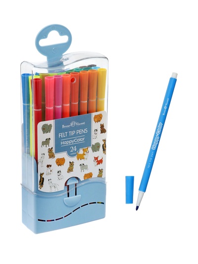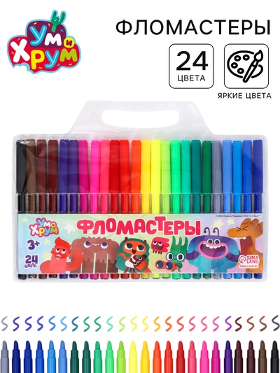 Фломастеры 24 цветов, толстые, с печатью, вен...