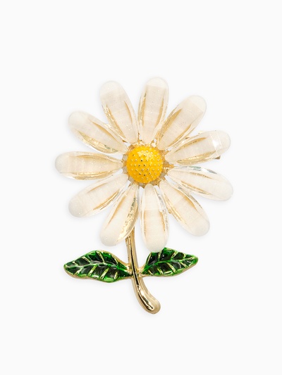 Брошь «Цветок Ромашка», белая в золоте
