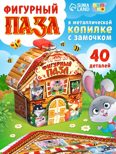 Фигурный пазл в металлической копилке с замоч...