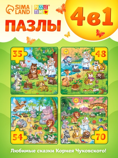 Книга картонная «Сказки в пазлах», 5 пазлов,...