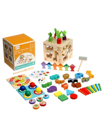 Детский сортер 8 в 1, деревянный