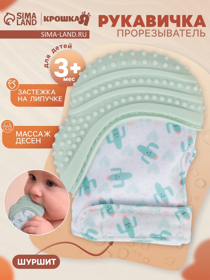 Прорезыватель на ручку для зубов «Кактусы», с...