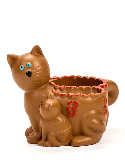 Декоративное кашпо для цветов «Кошка с котёнк...
