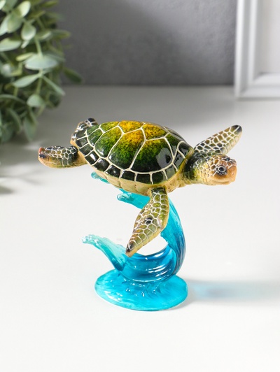 Фигурка полистоун лак «Черепаха на волне», зе...