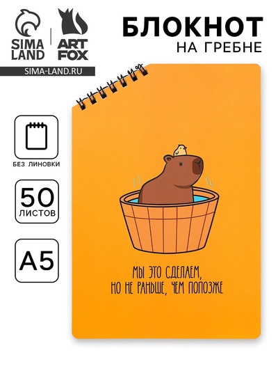 Блокнот А5 «Капибара», 50 л., на скошенном гр...
