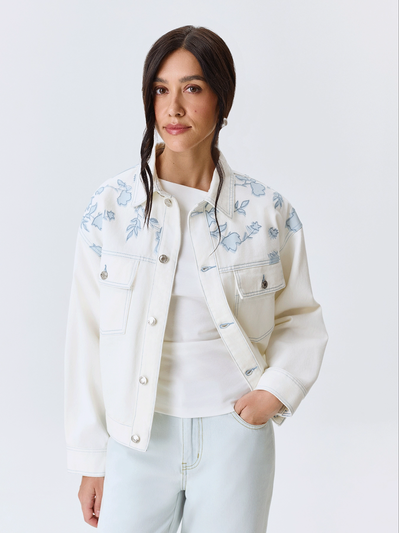 Джинсовый жакет с цветочным принтом SAVAGE