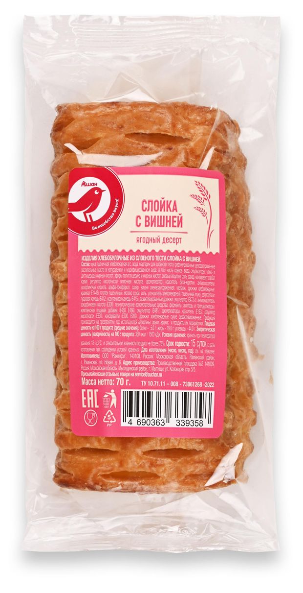 Слойка АШАН Красная птица с вишней, 70 г