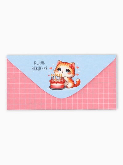 Конверт для денег «В День Рождения», кошечка,...