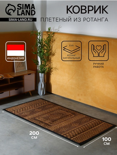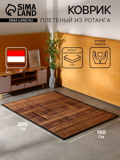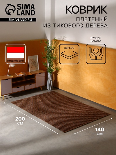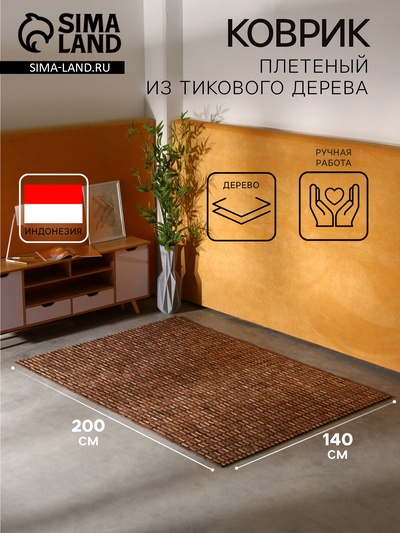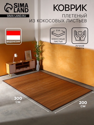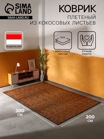 Коврик плетёный из кокосовых листьев, 200×150...