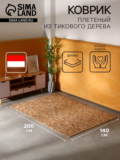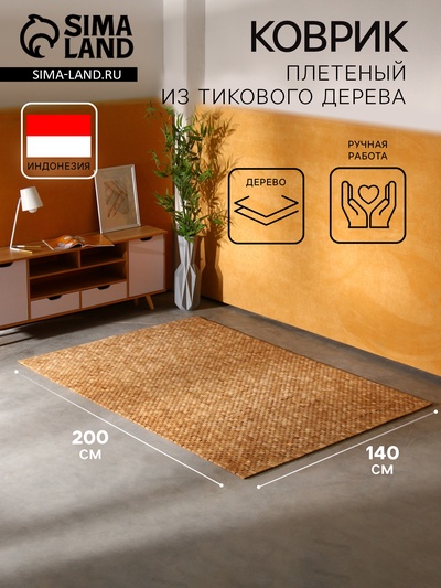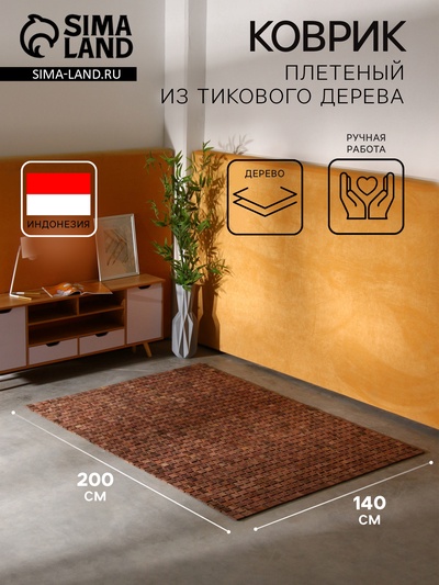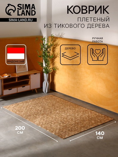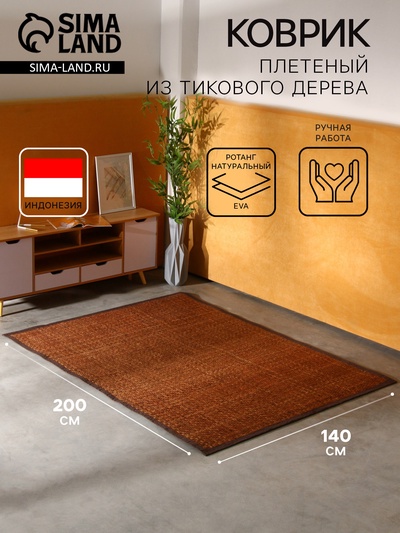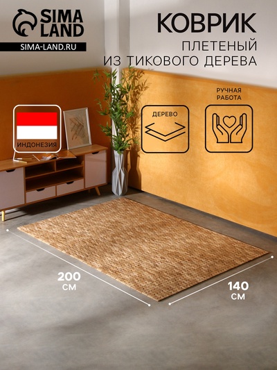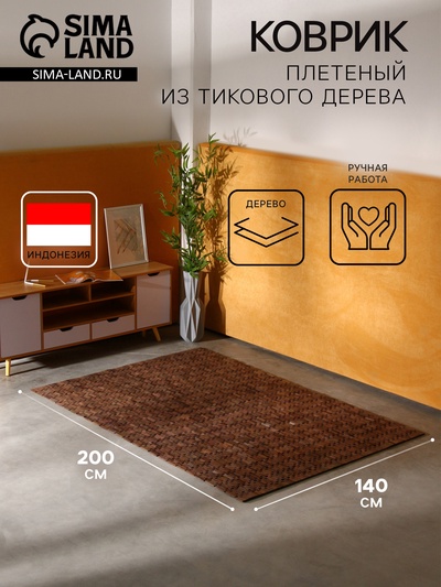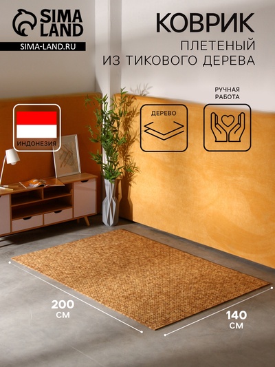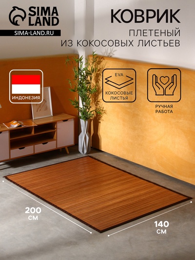 Коврик плетёный из кокосовых листьев, 200×140...