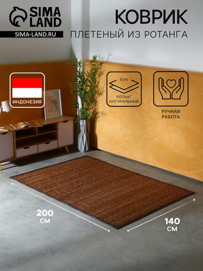 Коврик плетёный из ротанга, 200×140×0.6 см