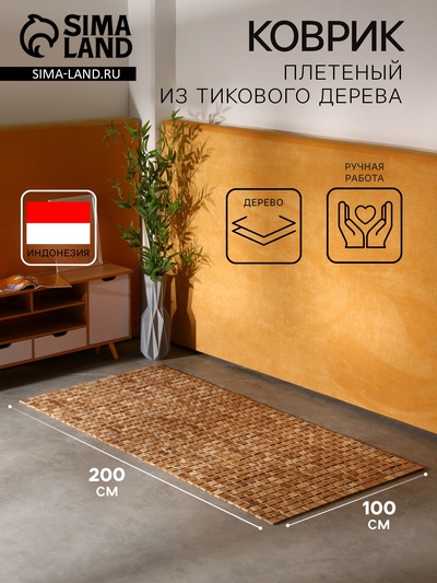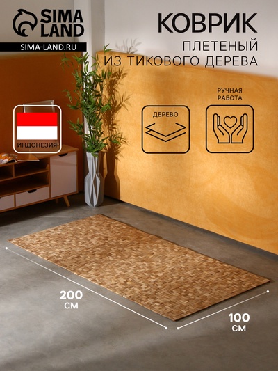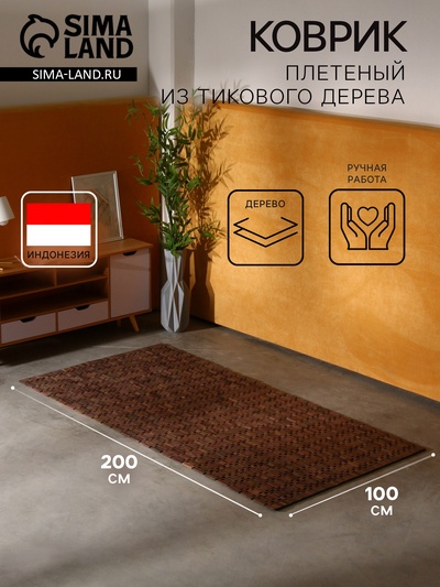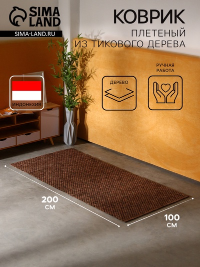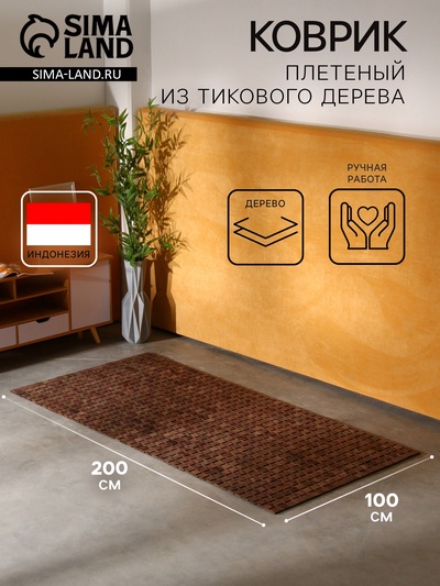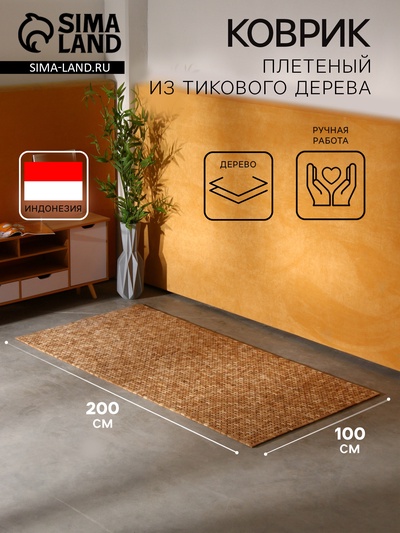 Коврик плетёный из кокосовых листьев, 200×100...