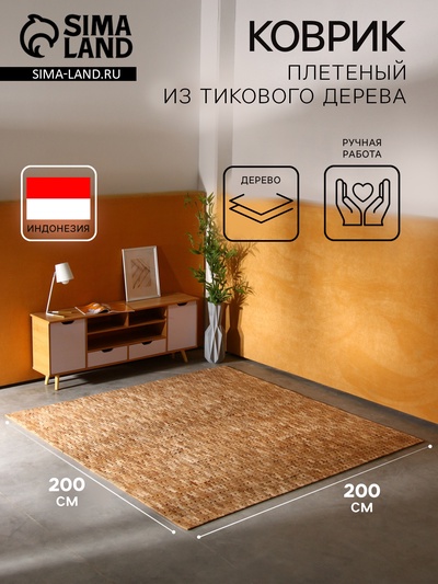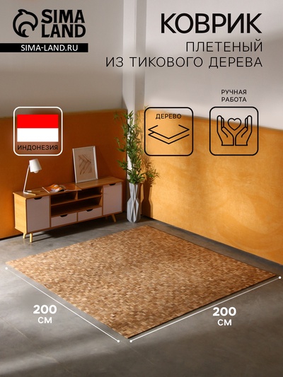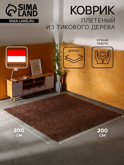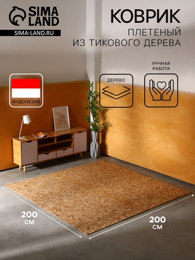 Коврик плетёный из кокосовых листьев, 200×200...