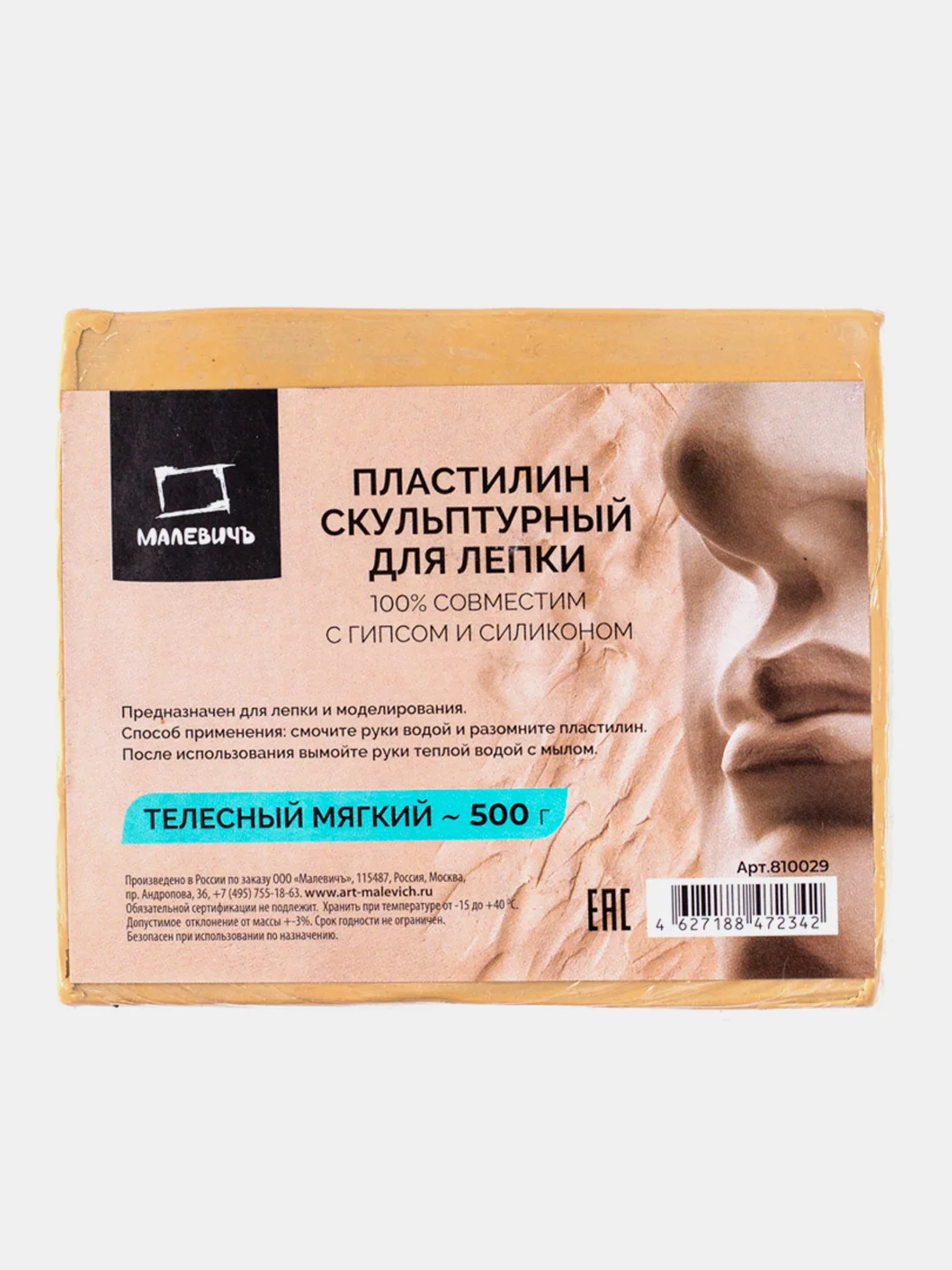 Пластилин скульптурный Малевичъ, телесный, мя...