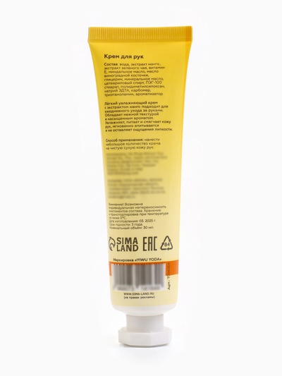 Крем для рук «Манго» увлажняющий, 30 мл