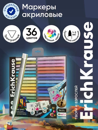 Маркеры акриловые 12 цветов, ErichKrause, Art...