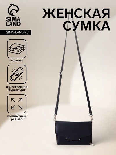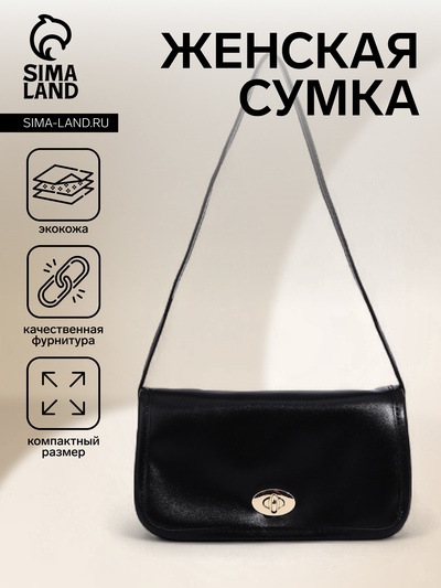 Сумка женская на клапане, 24×13×8 см, чёрная