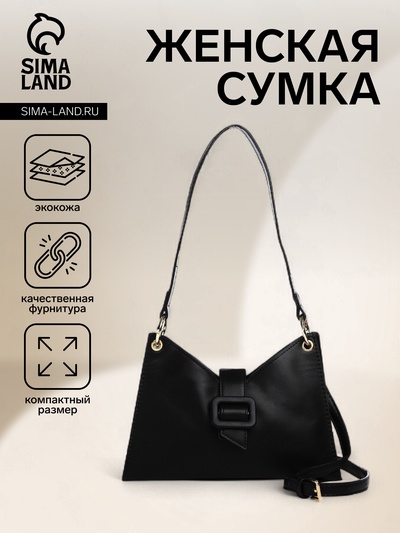 Сумка женская на одно плечо, на молнии, чёрна...