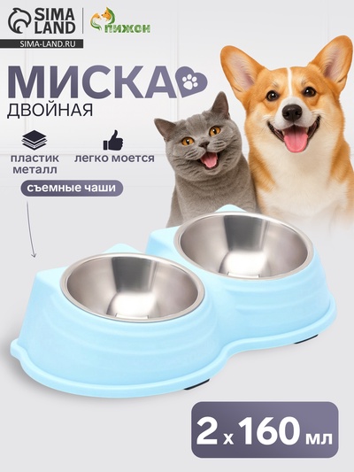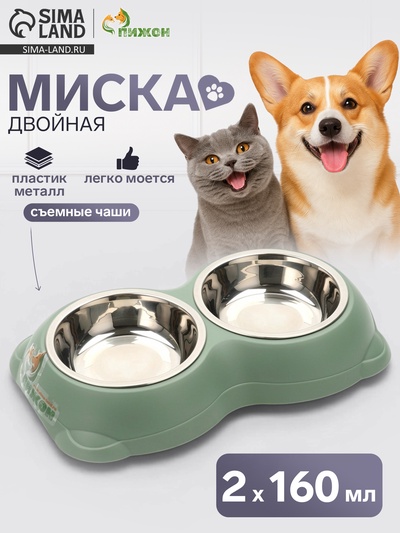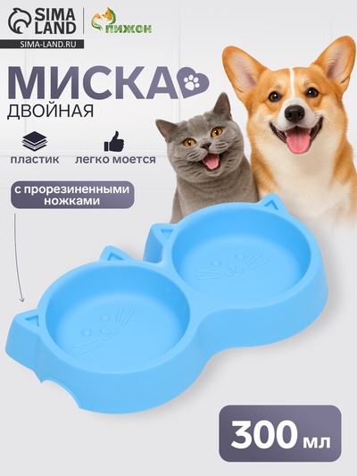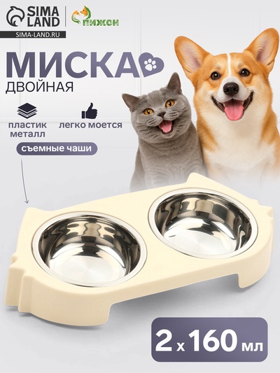 Миска двойная, 2×160 мл, 23×13×4 см, пластик,...