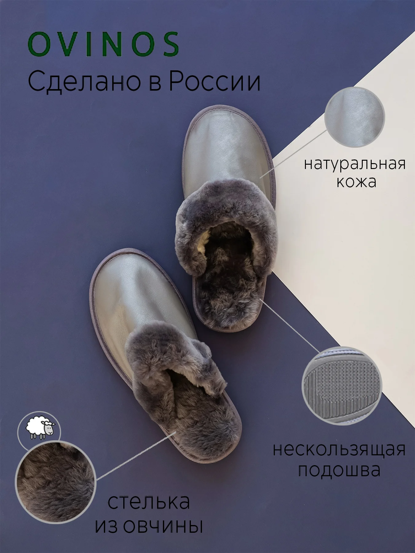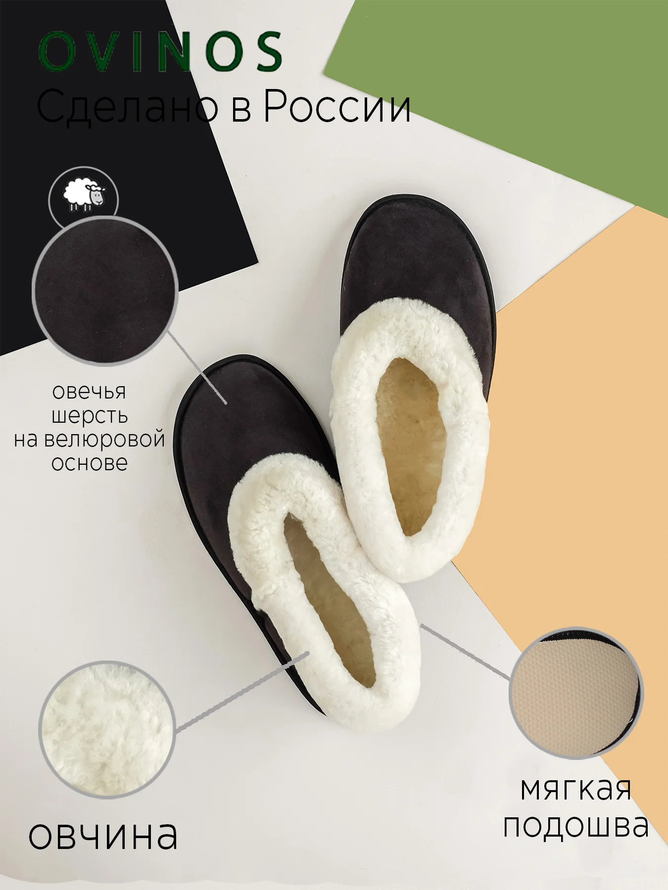 Мужские тапочки домашние, из овчины, больших...