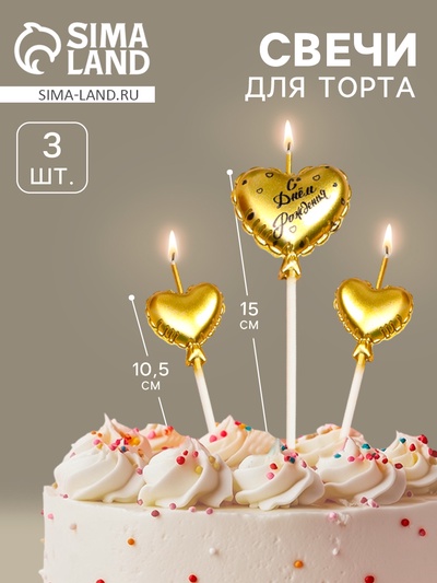 Свечи для торта, 3 шт. «Воздушный шарик. Серд...