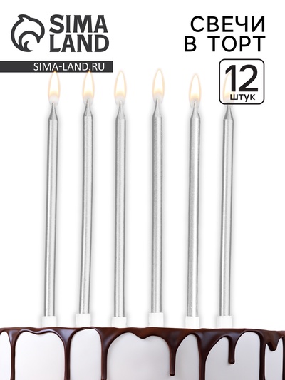 Свечи в торт «Ройс», 6 шт., высокие, 13 см, с...
