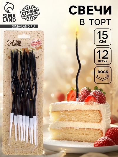 Свечи для торта «Серпантин», 12 шт., чёрный с...