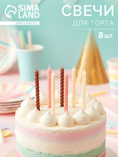 Свечи для торта витые «Серпантин» 6 шт., кокт...