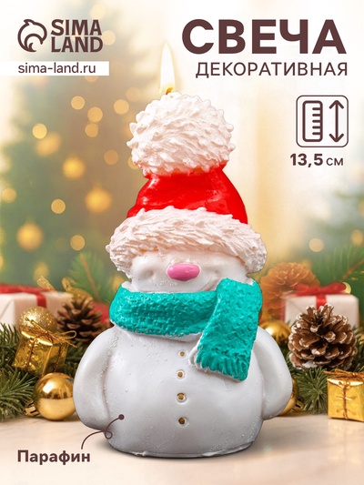Свеча декоративная «Снеговик в красной шапке»...