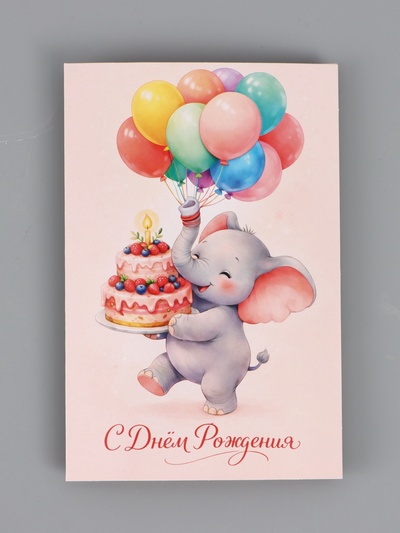 Открытка «С Днём Рождения», слонёнок, 12×18 с...