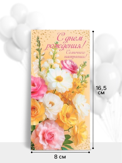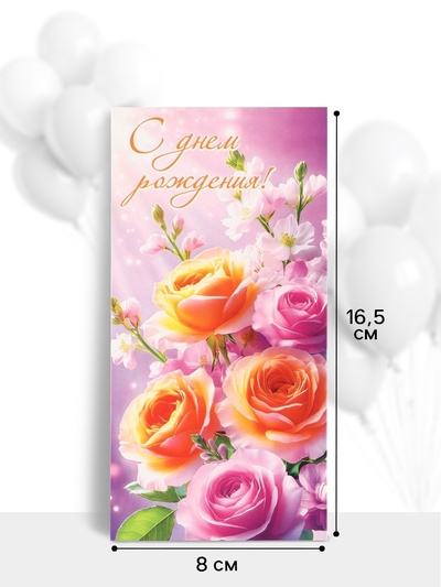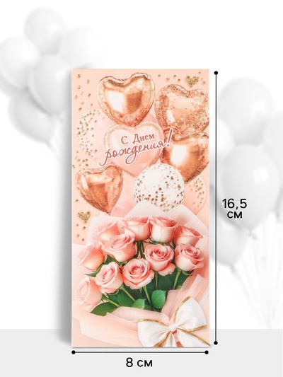 Конверт для денег «С днём рождения», 16.5×8 с...