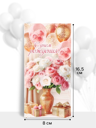 Конверт для денег «С Днем рождения!», 16.5×8...