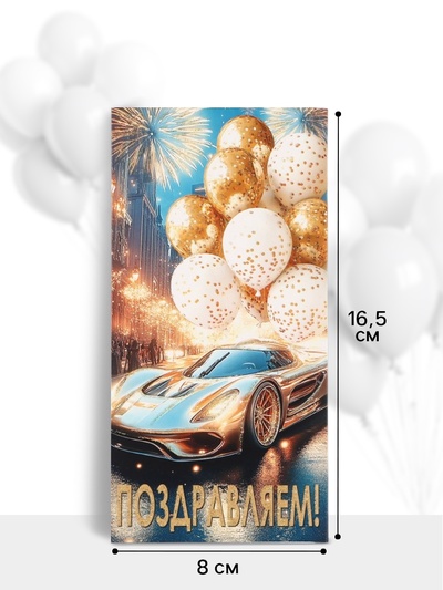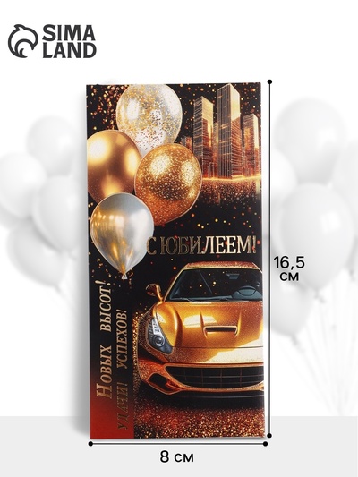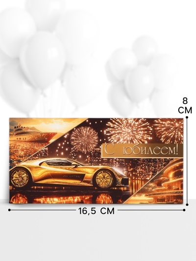 Конверт для денег «С юбилеем!», золотая машин...