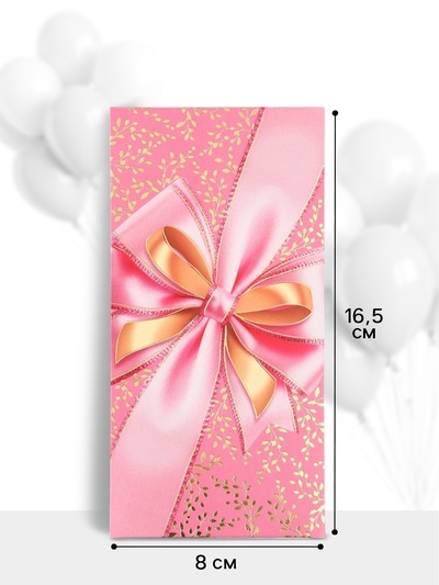 Конверт для денег «С бантом», 16.5×8 см, розо...