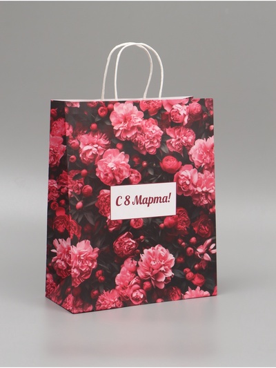 Пакет подарочный крафт, «С 8 Марта» 25×12×32...