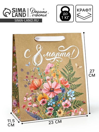 Пакет подарочный крафт «С 8 Марта» 25×12×32 С...
