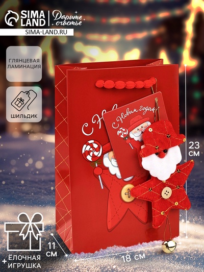 Пакет подарочный с шильдиком «Новогодний», 40...