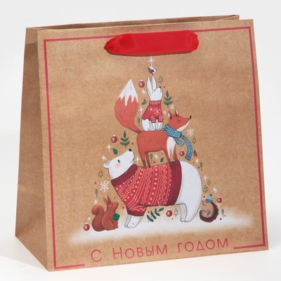 Пакет подарочный новогодний крафтовый квадрат...