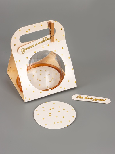 Коробка подарочная с куполом «Горошек бежевый...